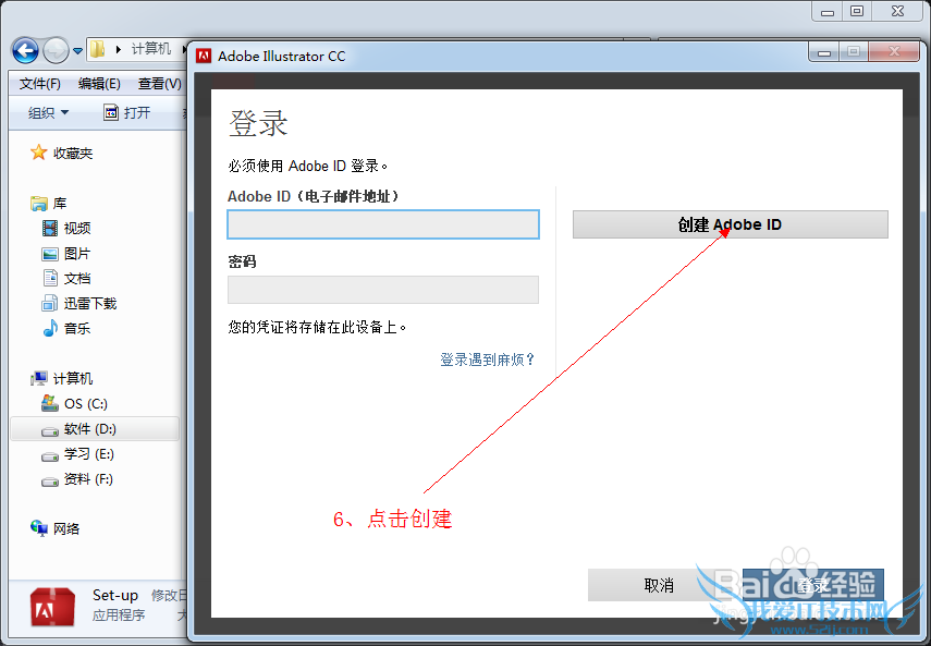 6.没有Adobe ID的朋友可以自行创建,如下图所示