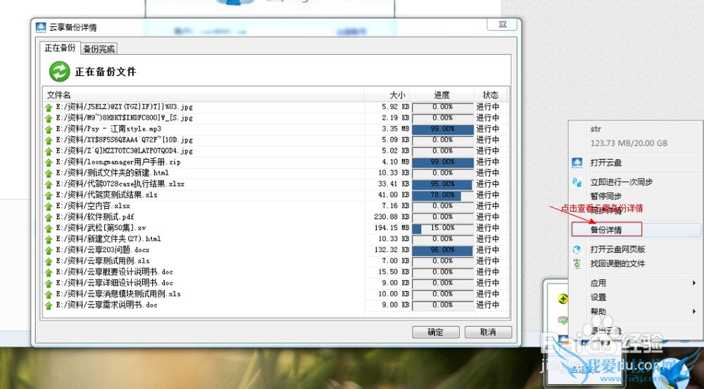 右键点击桌面右下角的云享图标,点击备份详情查看云享备份情况