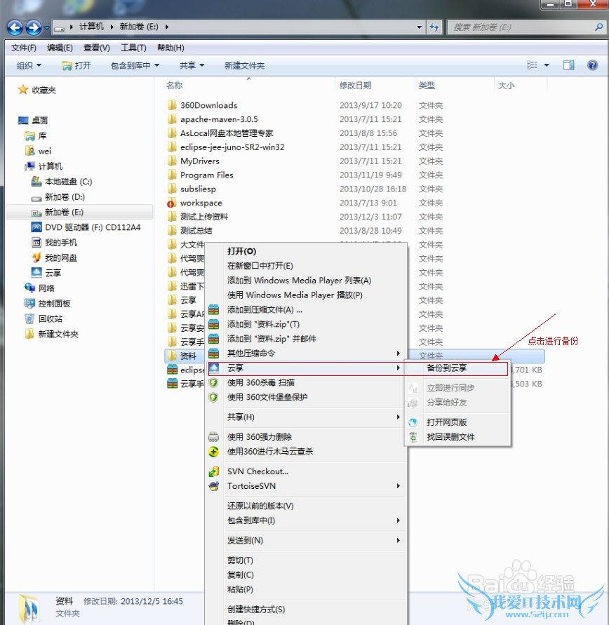 选择需要备份的文件或文件夹,点击右键-云享-备份到云享进行备份