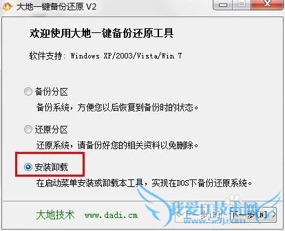 删除电脑开机系统中有大地一键备份还原方法 一、你要在网上找一个“大地一键备份还原”,下载下来。 二、打开“大地”软件,会看见3个选项:1、备份分区 2、还原分区 3、安装卸载。选择的第3个,单击下一步。 三、界面会出现提示系统已装有“大地一键... >>详细
