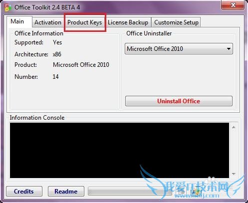2.点击Office Button完成后,在新弹出的页面中点击Product Keys,如图二
