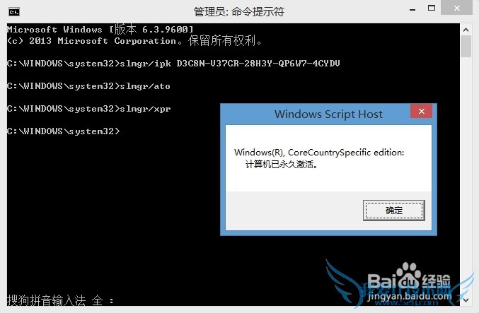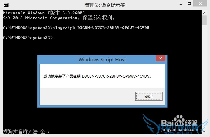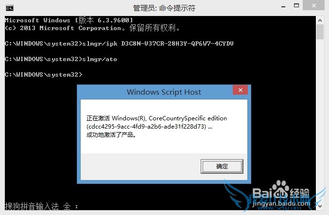 提示安装成功,再输入: slmgr/ato 激活成功!说明你就快成功了!