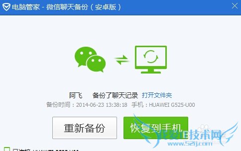 第五步、在新安装微信后,用同样的方法进入刚才备份的界面,到最后选择备份信息恢复到手机即可。