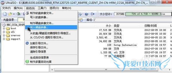 用软件打开Win8镜像后,按“启动”——“写入硬盘镜像”。