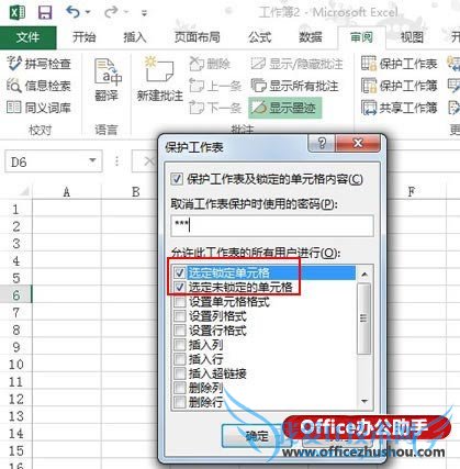 5、弹出保护工作表界面,勾选选定锁定单元格和选定未锁定的单元格这两项。