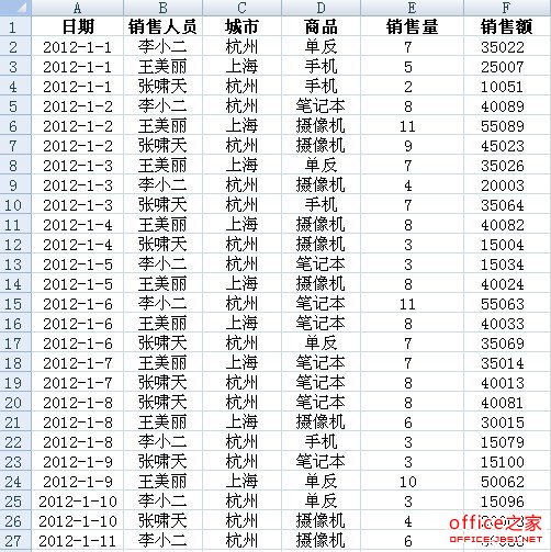 本实例记录的是一个销售数据清单,下面小编就给大家介绍一下以此清单创建数据透视表的具体方法。