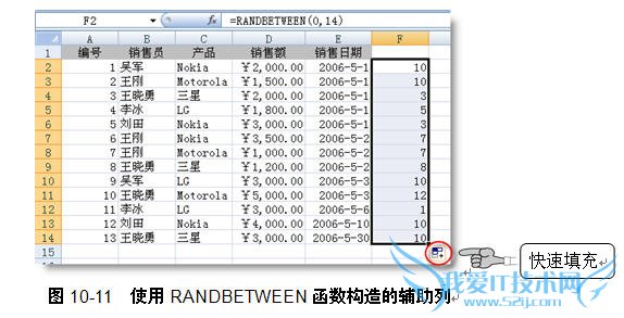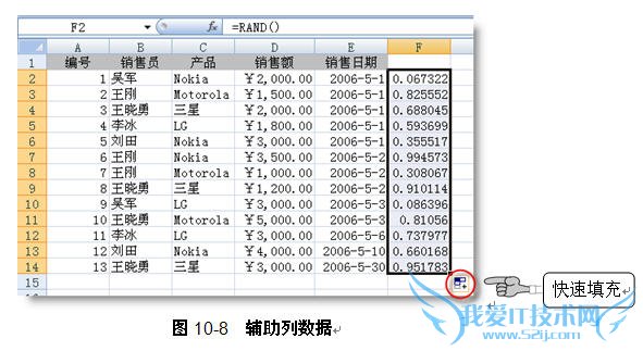 通过如下步骤来实现使用RAND函数构造辅助列。此处打开光盘中第9章技巧95(CDROM/Excel/第9章/技巧95.xls)。