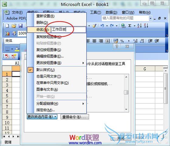 ⑤再次单击“更改所选内容”给“超链接”重命名为“工作日志”(可以命名为你常用文档的名称);