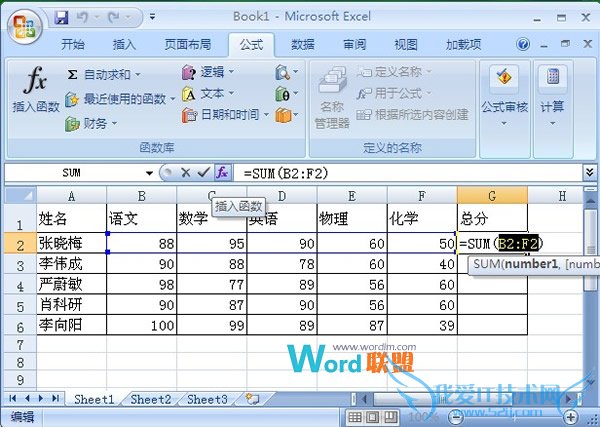 当老师的一定对制作学生成绩表不会陌生,当我们要知道学生的总成绩时,就需要把各科成绩进行相加求和,如果一科一科相加计算,费时又费力,还容易出错,这里我们就可以用到Excel中的求和函数来计算,这样不仅不容易出错,而且大大提高了我们的工作效率!好了,现在就由我爱IT技术网小编为大家分享如何在Excel2007中使用求和函数。