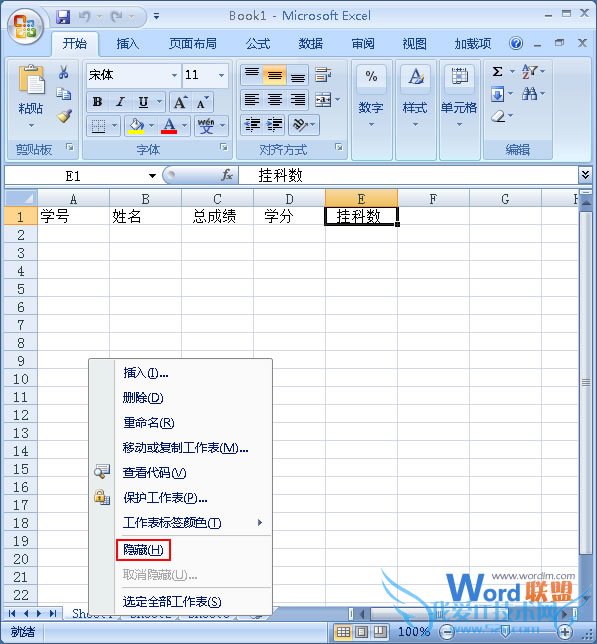 在Excel2007中对工作表进行隐藏与显示[excel2007教程]