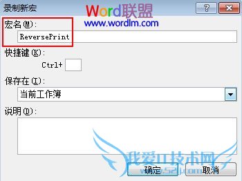 ②宏名可以自己随意定,但为了正规,一般都采用英文命名法,ReversePrint。