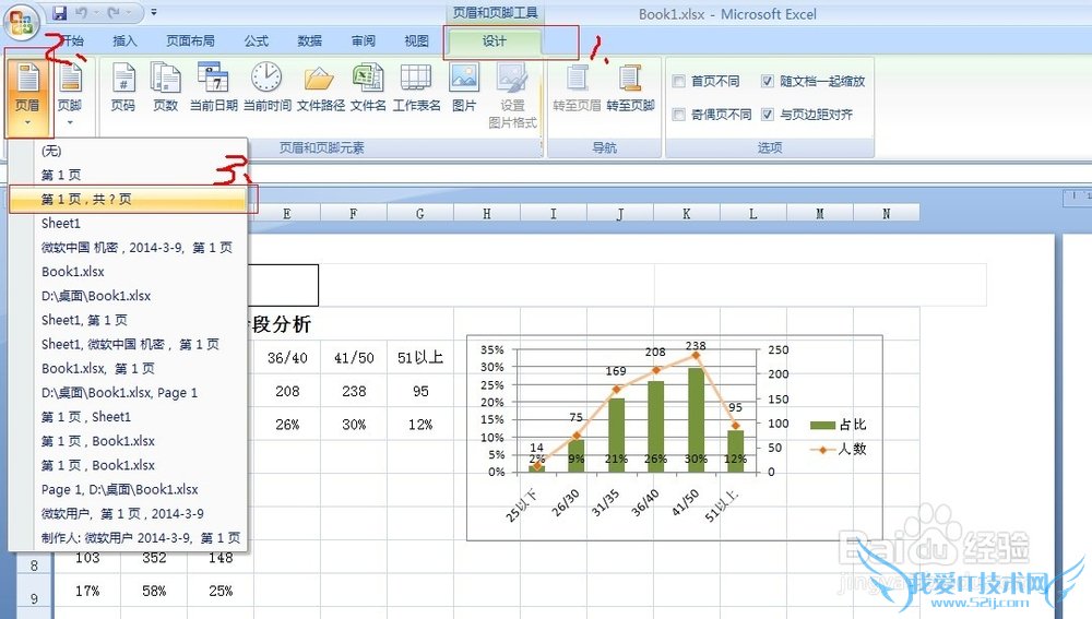 3 还可以通过菜单工具栏,设计一些自动计算的页眉页脚: