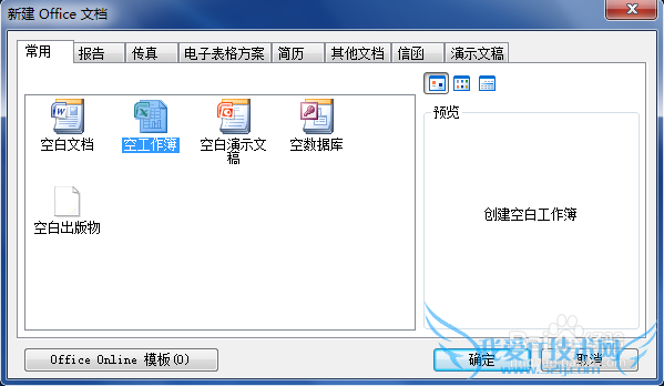 或者单击开始菜单,然后选择“新建Microsoft Office文档”,然后双击“空工作簿”: