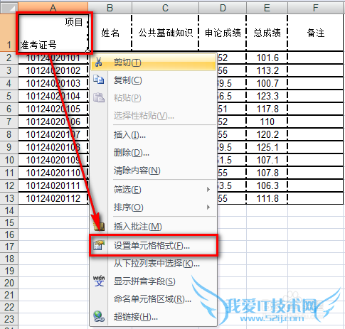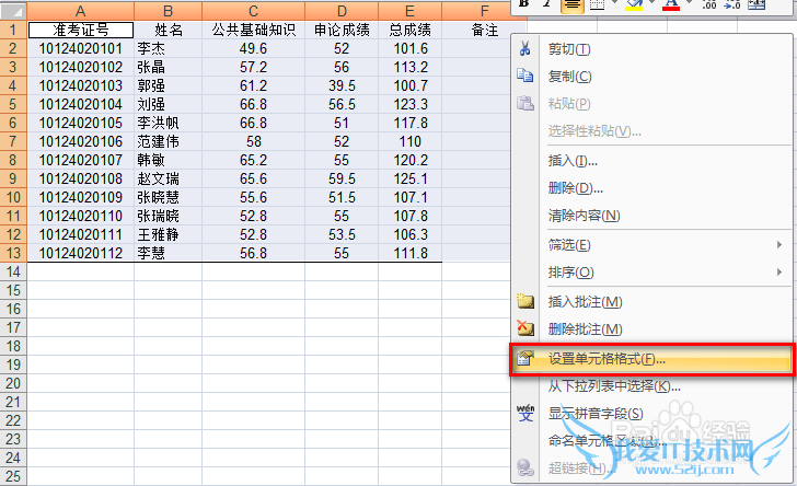 选择要画表格线的表格内容,然后右击,选择“设置单元格格式”:
