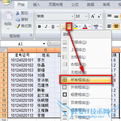 依次单击“开始”选项卡,然后单击框线下拉菜单中的“所有框线”,即可将所选内容的单元格全部画上框线: