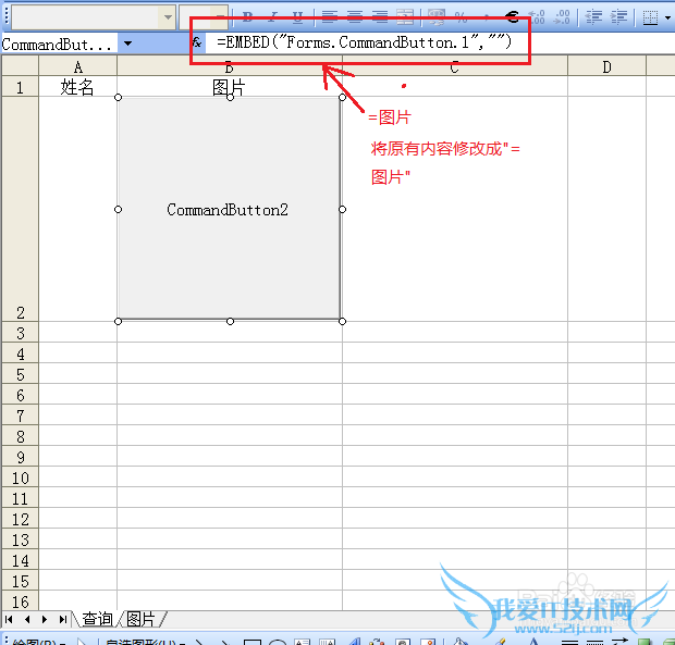 5.µã»÷¸Ã°´Å¥£¬ÔÚ±à¼À¸½«ÔÓÐÄÚÈÝ£¨¡°=EMBED("FORMS.COMMANDBUTTEN.1","")¡±£©¸Ä³É¶¨ÒåºÃµÄÃû³Æ£¬¡°=ͼƬ¡±£»