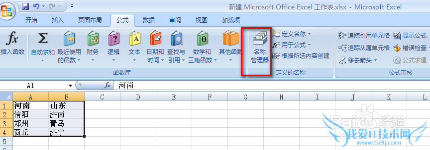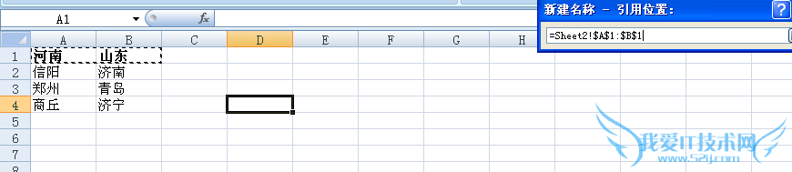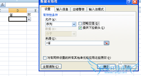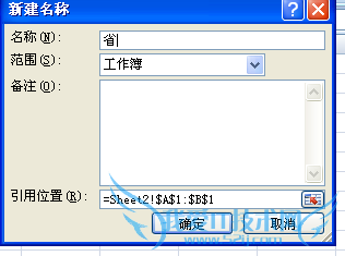 在创建一个名字为省的名称,选中A1,B1列创建.好了就OK了