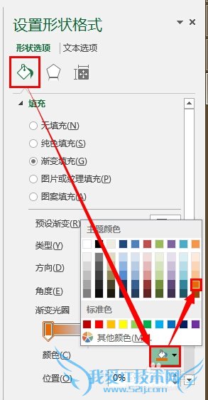 点击右侧的设置形状格式中的填充选项卡,然后选择颜色为橙: