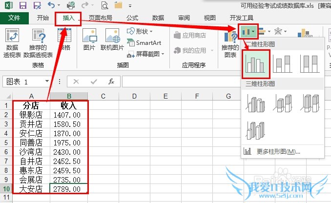 光标定位到需要做成柱状图的数据里面,然后依次点击插入,柱状图,柱状图: