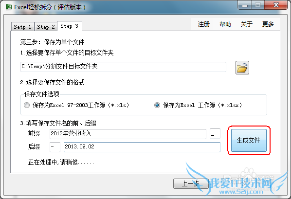 拆分完成后,会弹出一个消息框,显示已成功生成多少个文件。