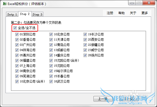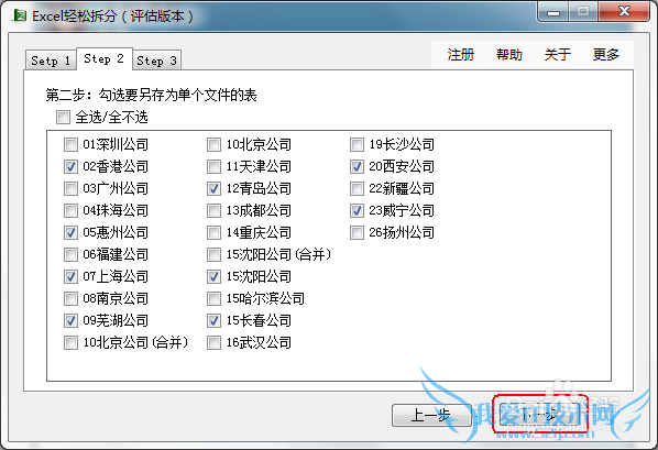 2.勾选好所需的工作表后,单击”下一步” (红色圆圈) 继续