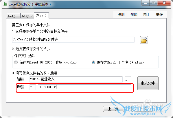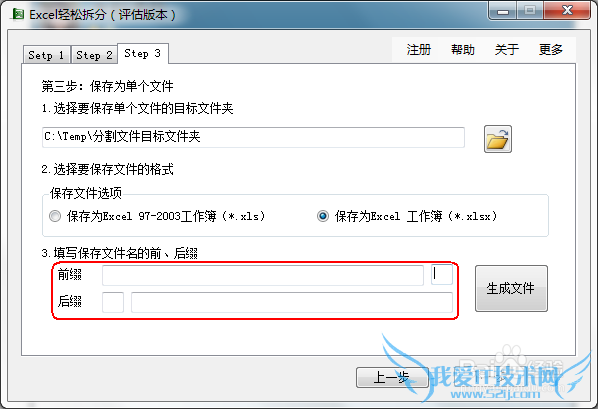 如果设置前缀、后缀均为空,然后按“分割” 按钮,那么将会生成以工作表名称命名的 Excel 文件 。
