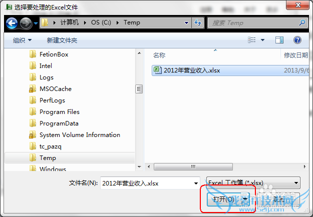 您可以通过使用窗口对话框中找到 Excel 文件,单击文件夹图标 (红色圆圈),打开对话框。