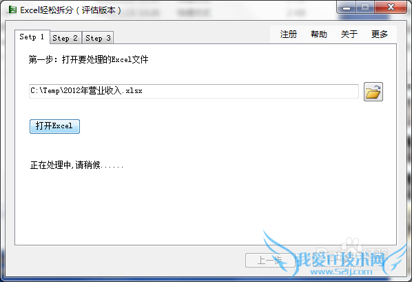 请等候软件将 Excel 文件读入内存,时间长短视文件大小。