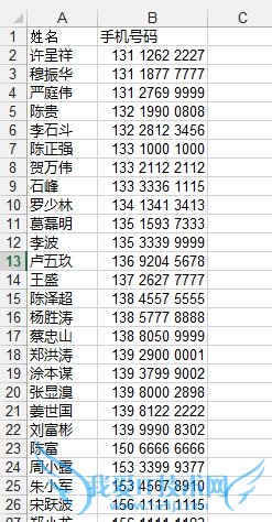 对于一长串的数字,比如手机号码等,如果密密麻麻的输入到Excel表格中,在阅读的时候总有点不太舒服,那么,应该怎么对已经输入完成的数据单元格进行分段显示呢?请阅读下文。