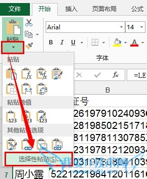 点击开始,粘贴下面的三角符号,然后选择 选择性粘贴 :