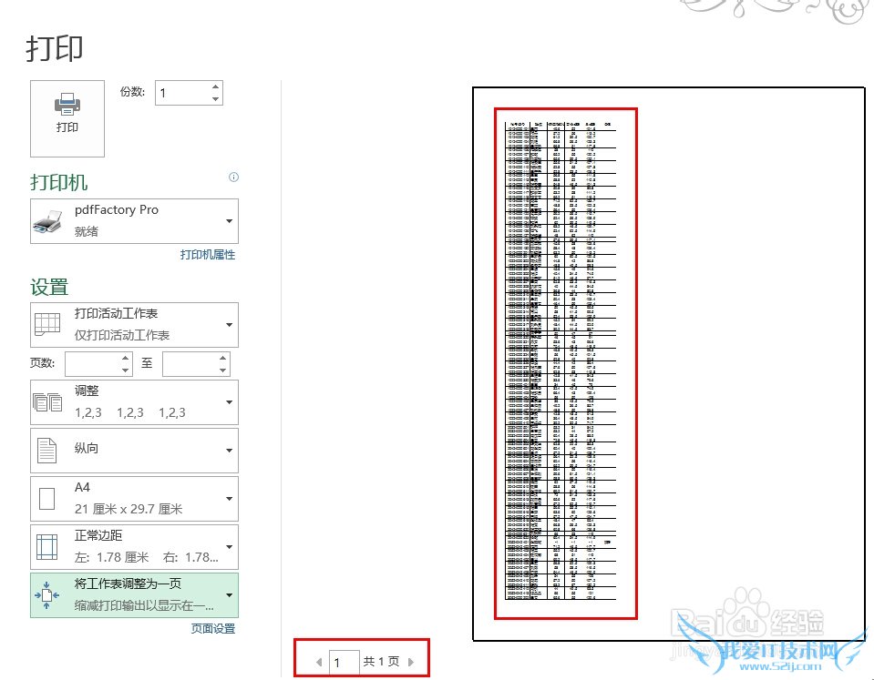如下图所示,Excel会对制作的表格进行缩放,将所有数据自动缩放到一页上面: