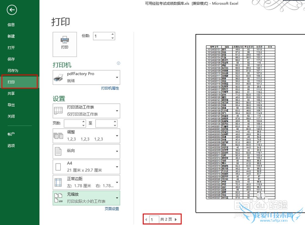点击 打印 ,然后观察下方的预览页码,制作的文档需要打印成 2 页: