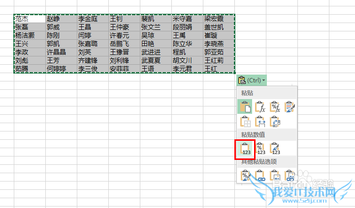 右击选择的数据,然后按键盘上的 Ctrl+C 组合键之后,再按键盘上的 Ctrl+V 组合键,点击粘贴选项按钮,然后选择 值 :