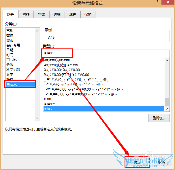 选择 自定义 ,然后输入类型为=A# (因为姓名列为A列,所以此处输入A,如果姓名列在B列,则此处输入=B# )