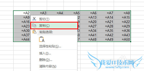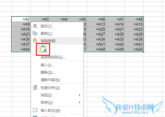 回到Excel表中,右击=A2 单元格,然后选择 粘贴按钮 :