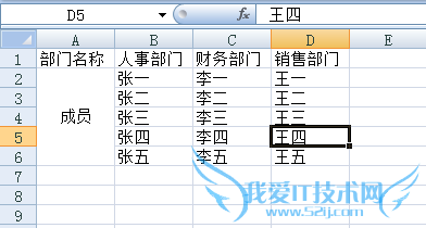 仿照上面的操作,将B、D……列分别命名为“人事部门”“销售部门”……
