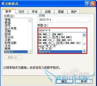 方法二,如果在“类型”中没有找到你所需要的,你可以在自定义的选项下设置