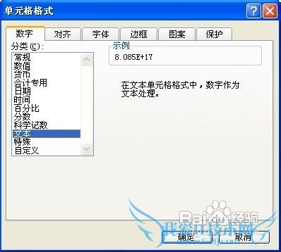 在数字选项下找到“文本”,点击确定。设置好后就可以输入数据了。