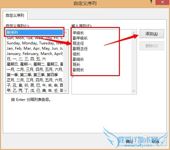 选择 新序列 后,在右侧输入要设置的排序顺序。注意,每个顺序单独成行。输入完毕之后,点击右侧的 添加 :