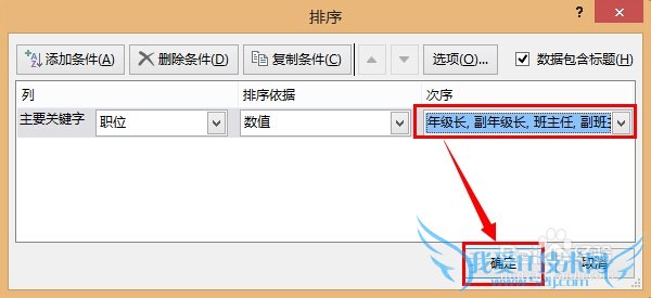 如下图所示,程序自动选中新添加的顺序为排序依据。点击 确定 :