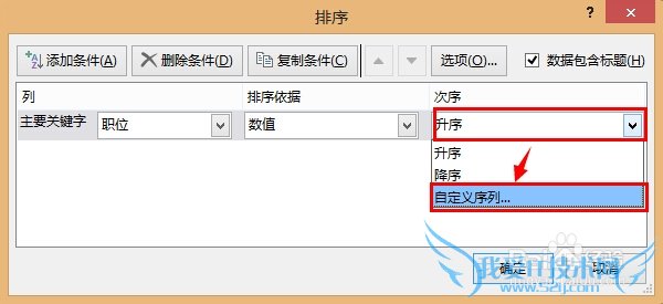 点击 次序 下的下拉列表,然后选择 自定义序列 :