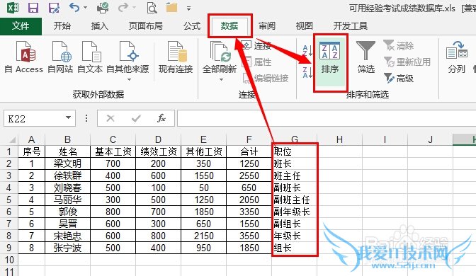 鼠标点击要进行自定义排序的列中任意单元格,然后依次点击 数据,排序 :