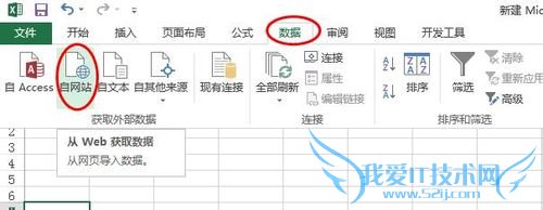 首先打开Excel,在菜单栏中点击:数据--自网站