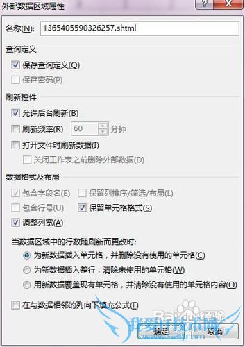 你还可以点击属性,对导入进行设置,如图所示,下面第二幅图中,如果你设定刷新频率,你会看到Excel表格中的数据可以根据网页的数据进行更新,是不是很强大