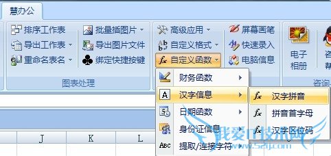 然后,选择【慧办公】→【自定义函数】→【汉字信息】,如下图