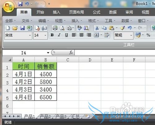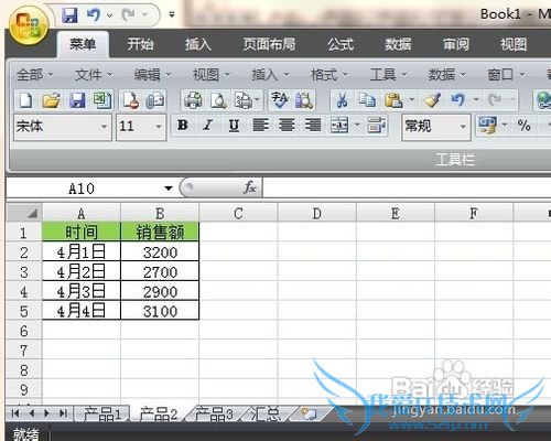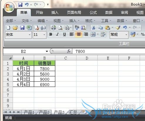 首先给大家看一下“产品1”、“产品2”、“产品3”三个表格的数据,如图;