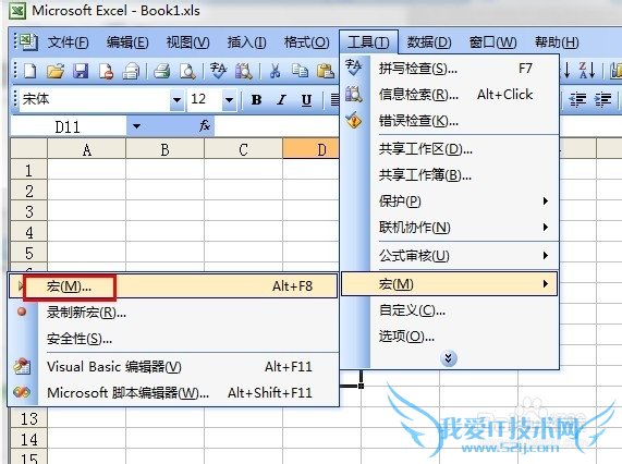 4、依次点击菜单“工具-->宏-->宏”,打开“宏”对话框。