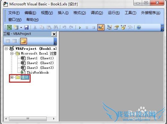 8、在编辑器窗口左边的工程列表框中找到“模块”文件夹,双击展开。