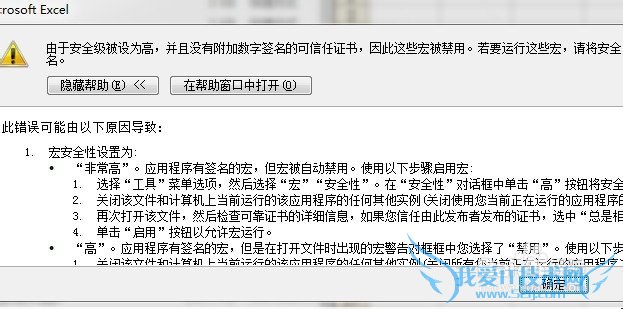 1、宏的运行或删除首先要在“宏的安全级别为低”的状态下才能进行,而Excel 默认“宏的安全级别为高”,所以打开带有宏的工作簿,会有如下提示: