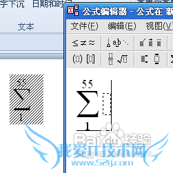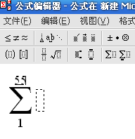 比如,我这里选择这个求和的公式,点击那个求和符号的标记。出来了这个符号,我们在相应的地方,输入数字,比如下方是1,上方是55。